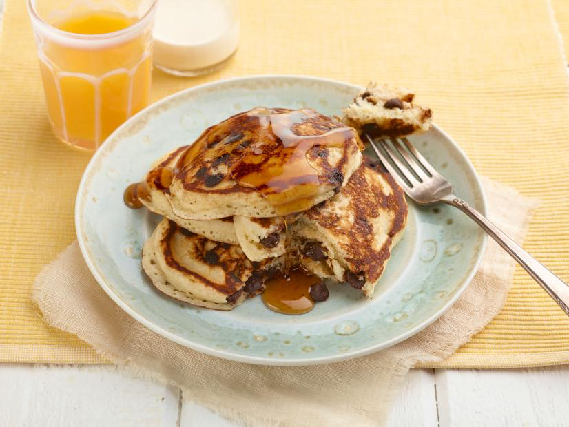 Cookies for breakfast?! That’s what The Food Network’s chocolate chip pancakes taste like – warm cookies. Place a pat of butter on each pancake as soon as they’re done cooking for extra richness.